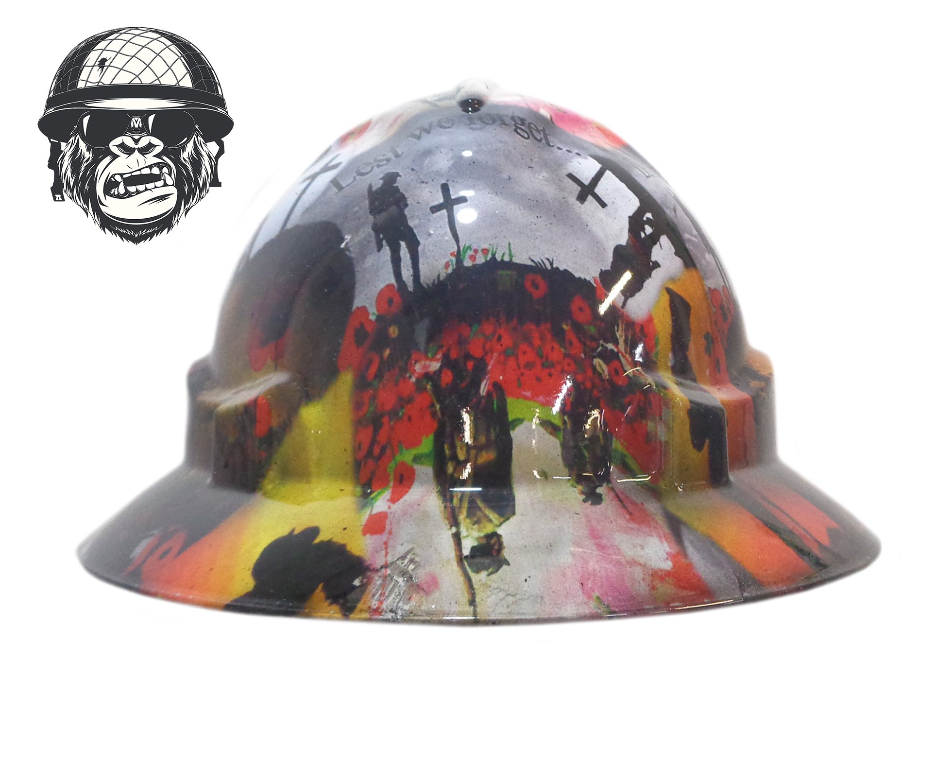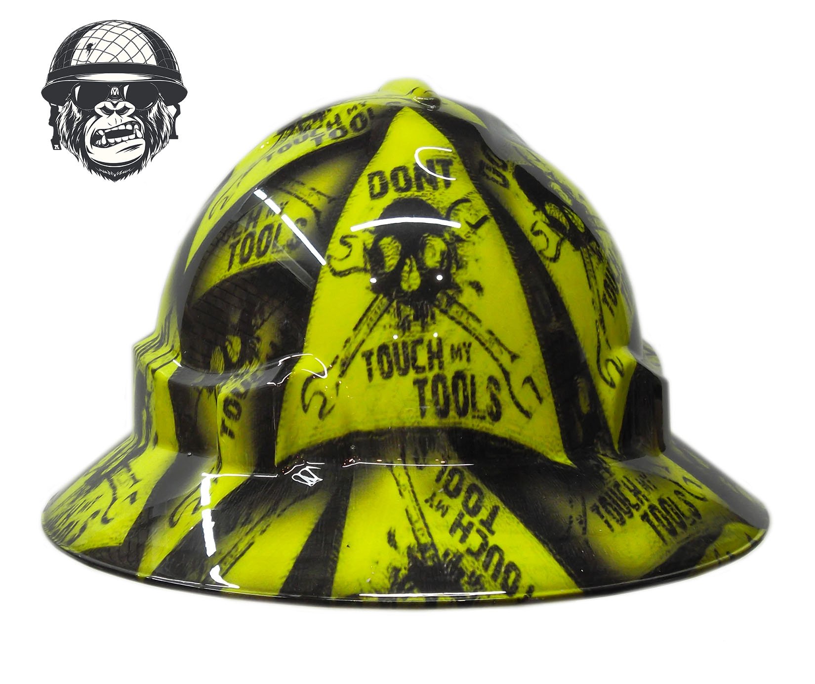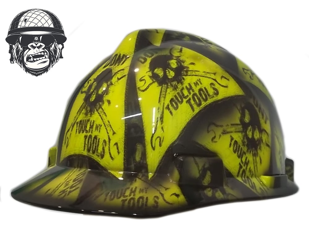 Our custom hard hats are super tough and highly scratch resistant. A special ink is applied to the shell of the hard hat and then coated in clear coat solution making them extremely tough and durable.