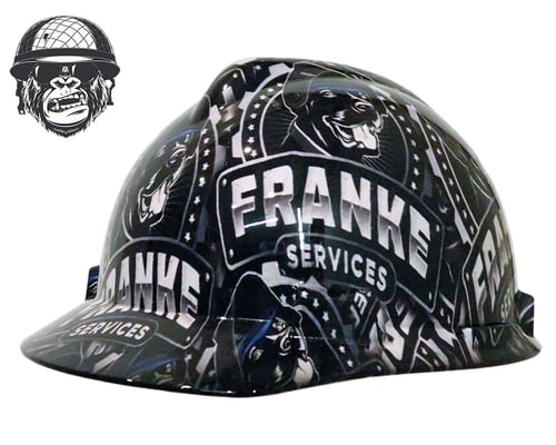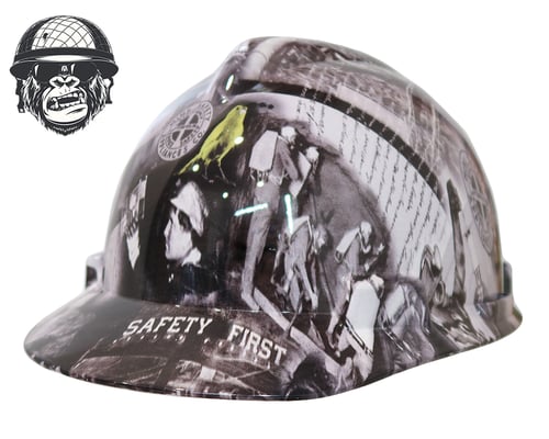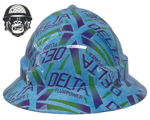 Hydrographic repetitive logo hard hat.